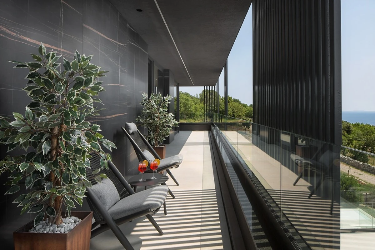 Die Tage auf dem Anwesen beginnen mit Düften und Geräuschen der Natur verbunden mit einem unausbleiblichen Panoramaausblick aufs Meer schon aus dem Bett. Genießen Sie alles was die Villa bietet, vom Morgengrauen und dem Vogelgezwitscher bis zur Dämmerung und einer frischen Meeresbrise. Dreihundert Quadratmeter Außenbereich, von denen ein großer Teil ein Swimmingpool mit Ausblick aufs Meer, auf die Inseln, die Halbinsel Ubas und Kap Kamenjak hat. Die Innenräume sind auf Schlaf- und Erholungsbereich auf der ersten Etage, auf Wohnbereich, Küche und Außenküche in der mittleren Etage und Unterhaltungsbereich auf der unteren Etage geteilt, wo sich ein Fitnessstudio und ein kleiner Wellnessbereich befinden, der mit dem Swimmingpool und professionellen Whirlpool eine Spa-Oase verwirklicht. Gönnen Sie sich ihre Lieblingsspeise im Esszimmer des Wohnbereichs oder Außenbereichs, oder zeigen Sie Ihr Kochtalent in zwei professionell ausgestatteten Küchen. Um den Sternenhimmel zu beobachten, haben Sie im Schlafbereich ein Teleskop zur Verfügung, mit dem Sie durch den Tag auch die Meeresküste von Südost Istrien erforschen können.