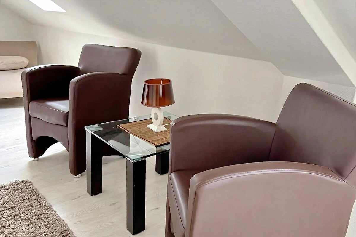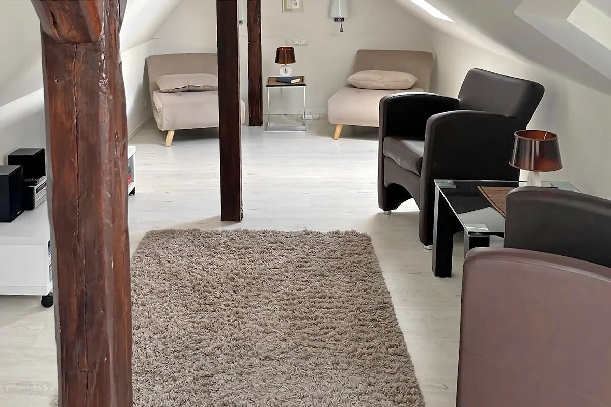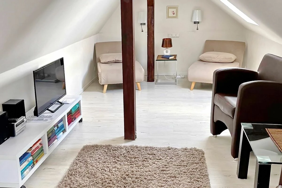 Der sehr schön ausgebaute Spitzboden mit 2 Veluxfenstern und ca. 12 qm Wohnfläche steht Dir als Aufenthaltsraum zur Verfügung. Hier kannst Du lesen, Musik hören, fernsehen oder einfach nur relaxen. Für Deine Kinder ist es ein schöner Gemeinschafts- und Spielraum. Als Schlafraum für die Nacht darf der Raum nicht genutzt werden.