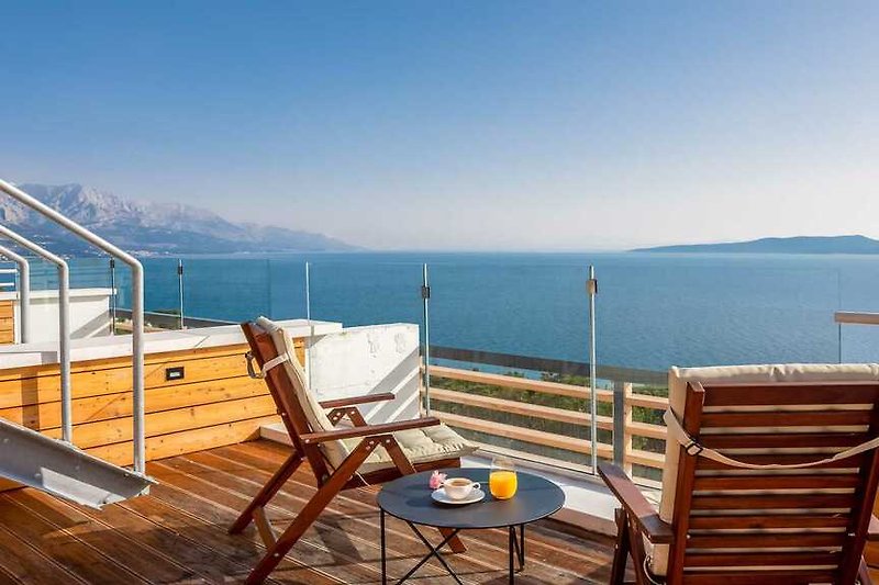 Apartment VIVA – Villa Oneum – Modernes Apartment in Omiš mit Balkon und Meerblick. Komfortable Ausstattung, voll ausgestattete Küche und nahe gelegene Strände.