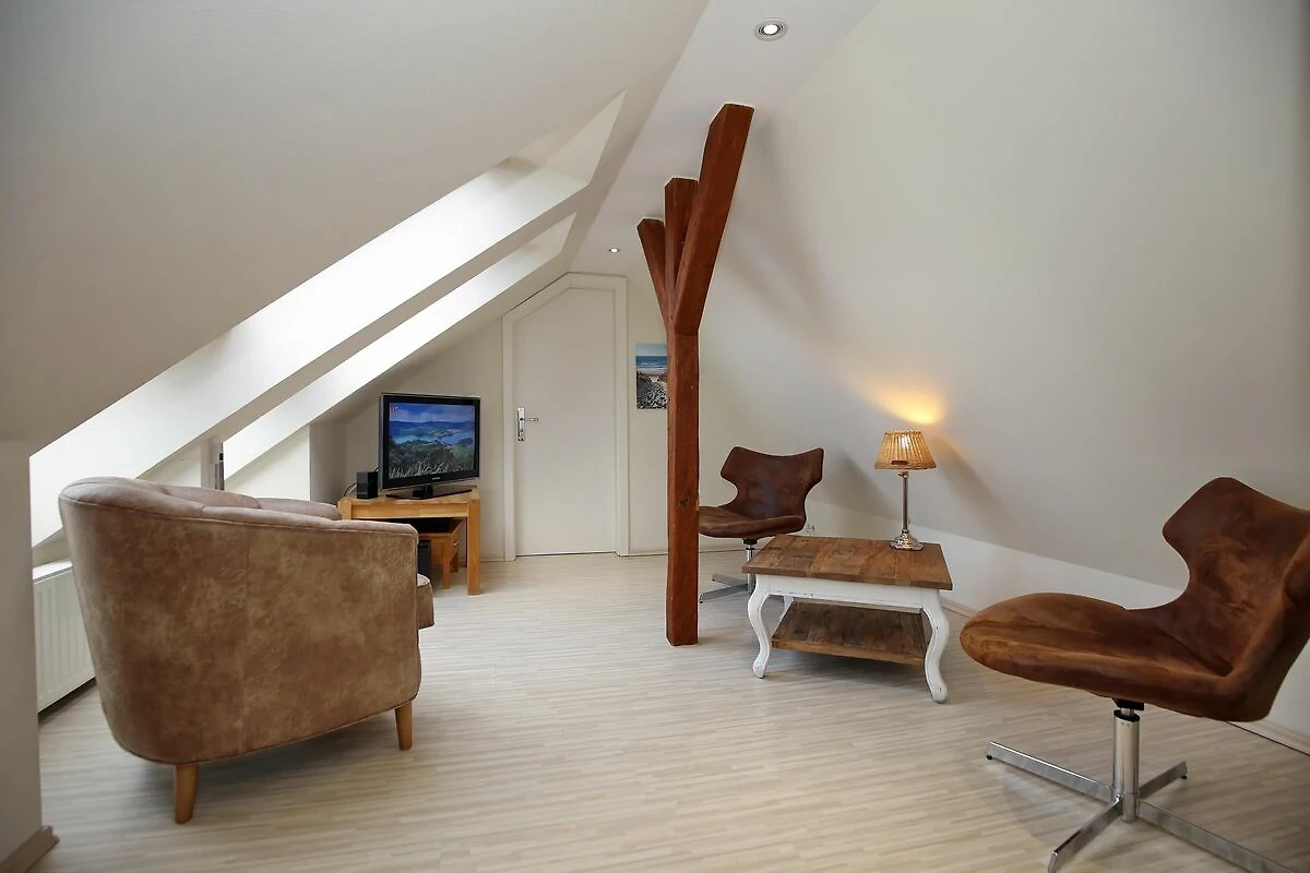 Eine sehr schön gelegene Wohnung mit 3 Personen Optimal belegt. Als Familie mir 2 Kinder auch bestens geeignet. Obergeschoss durch die Dachschräge sehr romantisch, aber für Leute über 1,70 m etwas flach. Treppe ist recht steil, man muss vorsichtig hoch und runter steigen. Doch für Liebhaber der Romatik unter dem Spitzdach mit Blick auf den Sternenhimmel ist es genial. ;) immer wieder gern für eine. Kurzurlaub im Herbst!