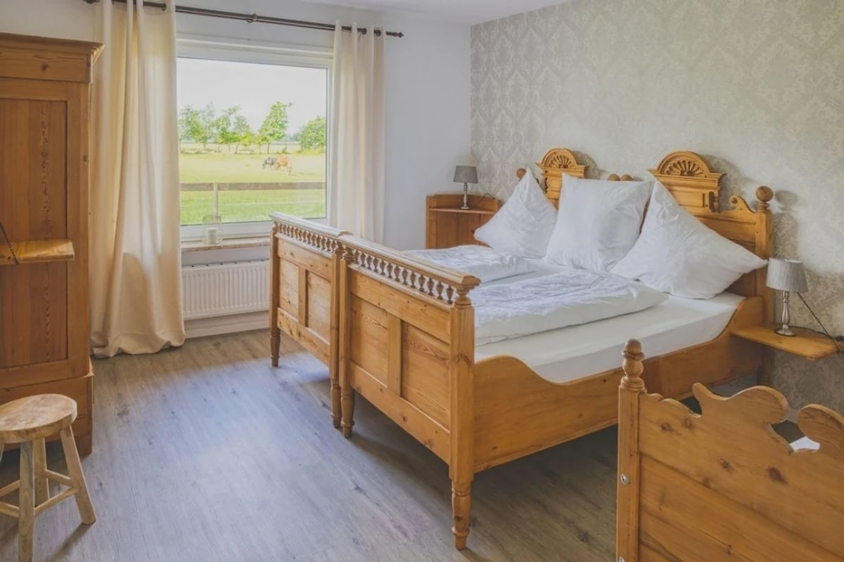 Die beiden Schlafzimmer wurden liebevoll mit tollen, restaurieren und auf 2 Meter verlängerten Einzelbetten aus dem vorherigen Jahrhundert eingerichtet und bieten Platz für 4 bis 5 Personen.