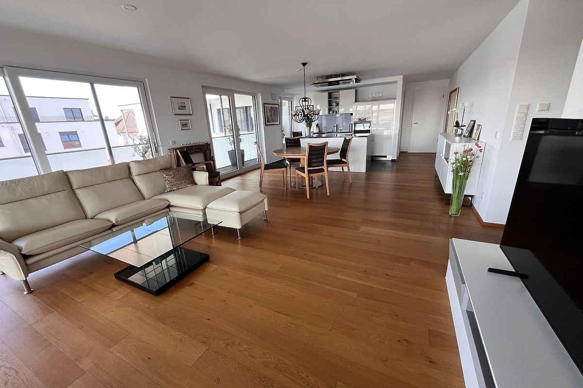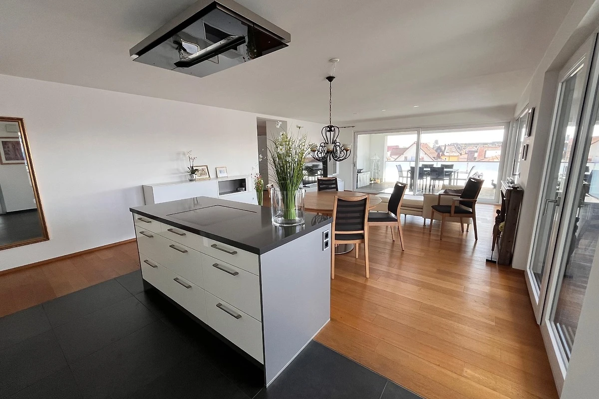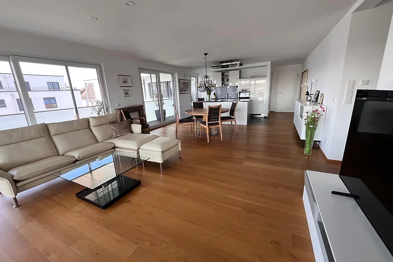 Die Komfort-Wohnung liegt nur 10 Gehminuten von der Uferpromenade von Friedrichshafen entfernt, ebenso erreichen Sie fussläufig den Bahnhof, Einkaufs- und Einkehrmöglichkeiten. Den Abend können Sie entspannt auf dem überdachten Balkon mit Panoramablick ausklingen lassen. Ihre Nachtruhe finden Sie in einem der beiden Schlafzimmer auf einem hochwertigen Boxspringbett. Weiterhin haben Sie im Schlafzimmer einen grossen Kleiderschrank. In beiden Schlafzimmern ist ein Reisebett für Kleinkinder bis 3 Jahren möglich.