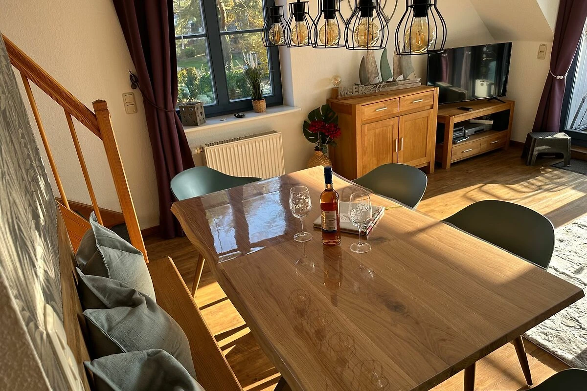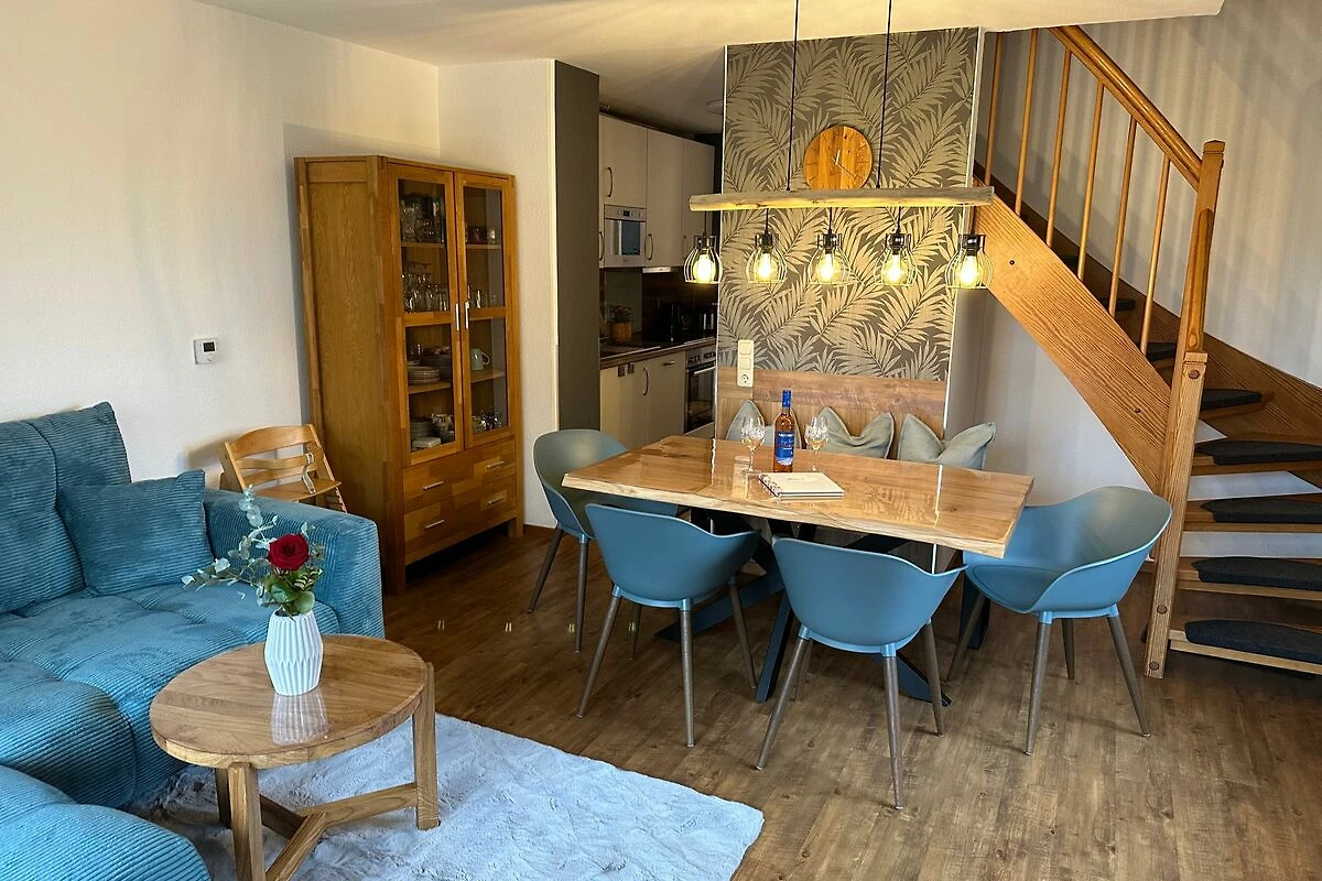 Die Wohnung ist geschmackvoll eingerichtet, die Küche voll ausgestattet, es fehlt nichts. Es gibt auch sehr bequeme Gartenstühle. Die Kaffeemaschine war defekt und wurde innerhalb 1 Std ausgewechselt, von einem sehr netten Mitarbeiter. Was ein bisschen schade war: auf den ersten Blick war zwar alles sauber, aber es gab einige Ecken/Bereiche, die nicht richtig gereinigt wurden. Was aber nicht weiter schlimm war, da es nur Staub war. Bad, Küche, Fussboden usw waren okay. Jetzt noch eine kleine Anregung. Es wäre schön, wenn der Balkon ein Segel oder ähnliches hätte, damit man auch bei etwas Regen, Wind oder Kälte draussen sitzen kann. Wäre sicher für alle Wohnungen ein Gewinn. Wir waren jetzt das vierte Mal da und kommen gerne wieder.