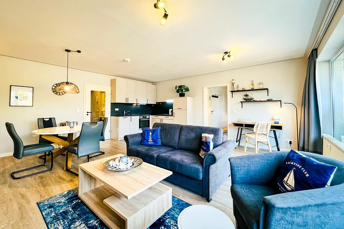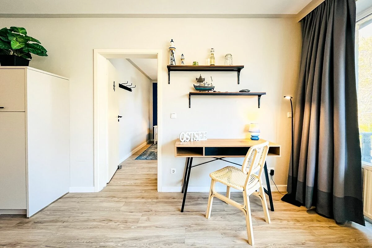 Die in 2021 renovierte Ferienwohnung Nr. 40 in der Anlage Residenz Seestern ist eine 2-Zimmerwohnung für bis zu 4 Personen. Das Bad, die Möblierung wurden mit einem modernen Anstrich modernisiert.