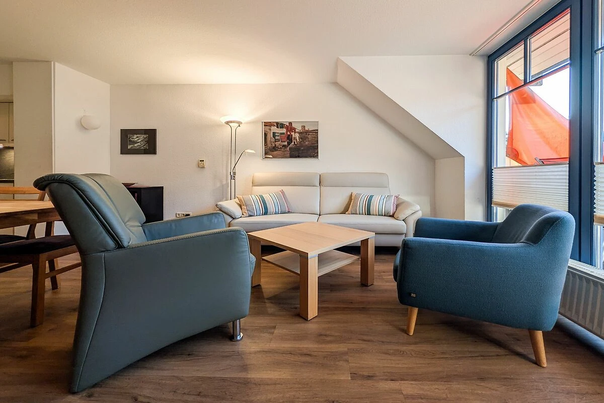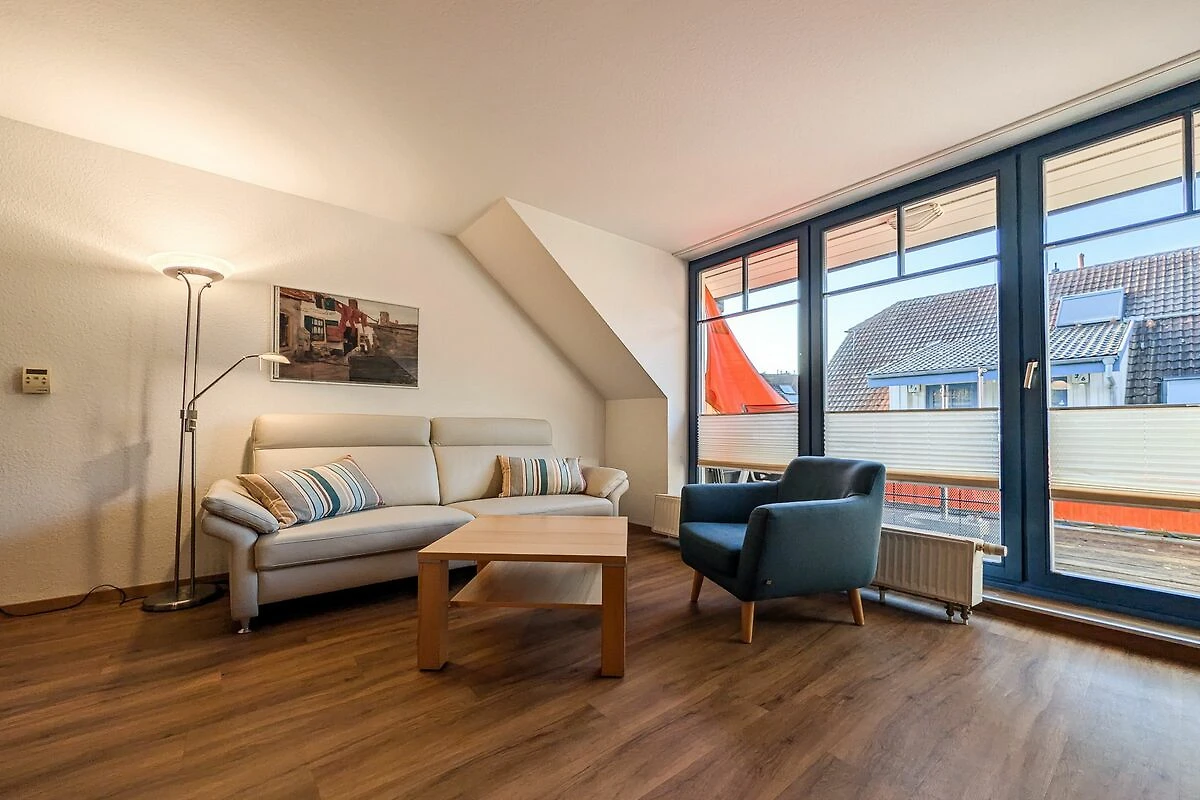 Die Wohnung ist angenehm geschnitten, die Zimmer (Doppelbett, Doppelbett, 2 Einzelbetten) ermöglichen bis zu 6 Erwachsenen gute Schlafmöglichkeiten. Den Gesamteindruck stört, dass die Küchenzeile direkt im Gang angesiedelt ist - und auch eine Toilette ist ggf. zu wenig. Aber hat alles geklappt :-) Die Lage ist super, man kommt auch schnell mit dem Hund raus und ist in wenigen Minuten am Hundestrand. Wir waren etwas getroffen von einer feierwütigen Großgruppe im Haus nebenan, da steckt man aber nicht drin. Die Parkplatzsituation war grenzwertig, mit unserem Volvo war das Ein/Ausparken schlecht möglich. Andere sind mit 2 Autos dagewesen, obwohl pro Wohnung nur ein Parkplatz zur Verfügung steht. Wir würden die Wohnung aber wieder anmieten :-)
