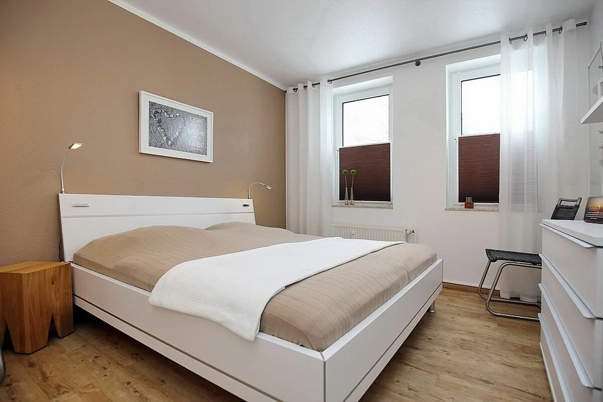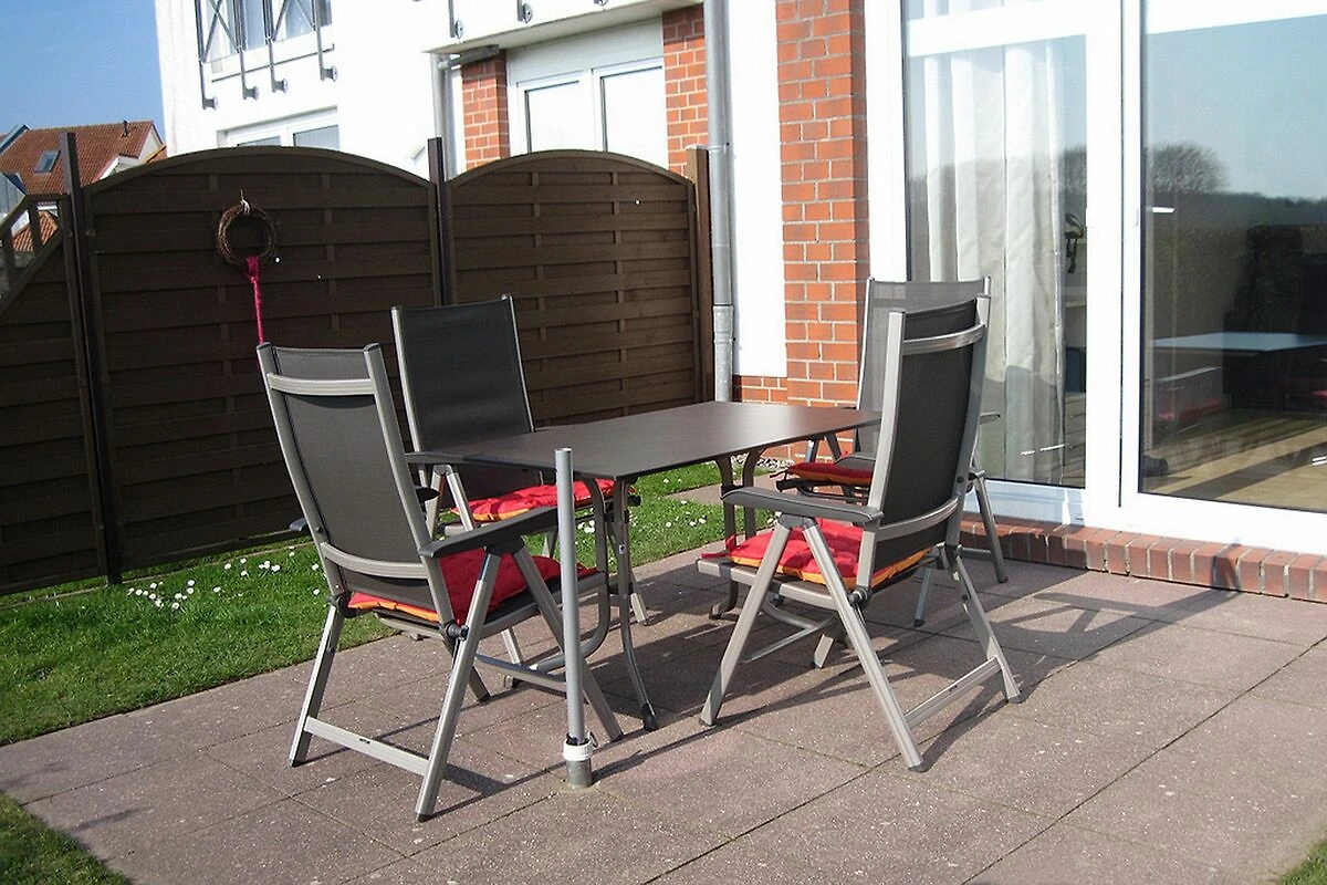 Dieses freundliche und mit Liebe zum Detail eingerichtete 3-Zi.-Appartement lädt dich auf unbeschwerte Urlaubstage ein. Die ca. 64 m² Erdgeschosswohnung mit Terrasse in sonniger Süd-Lage bietet Platz für bis zu 4 Personen. Die Wohnung hat einen Wohn- und Essbereich, zwei Schlafzimmer, eine Küchenzeile und ein Duschbad. Die Entfernung zum Strand beträgt von der Anlage Sünnslag ca. 400 m.