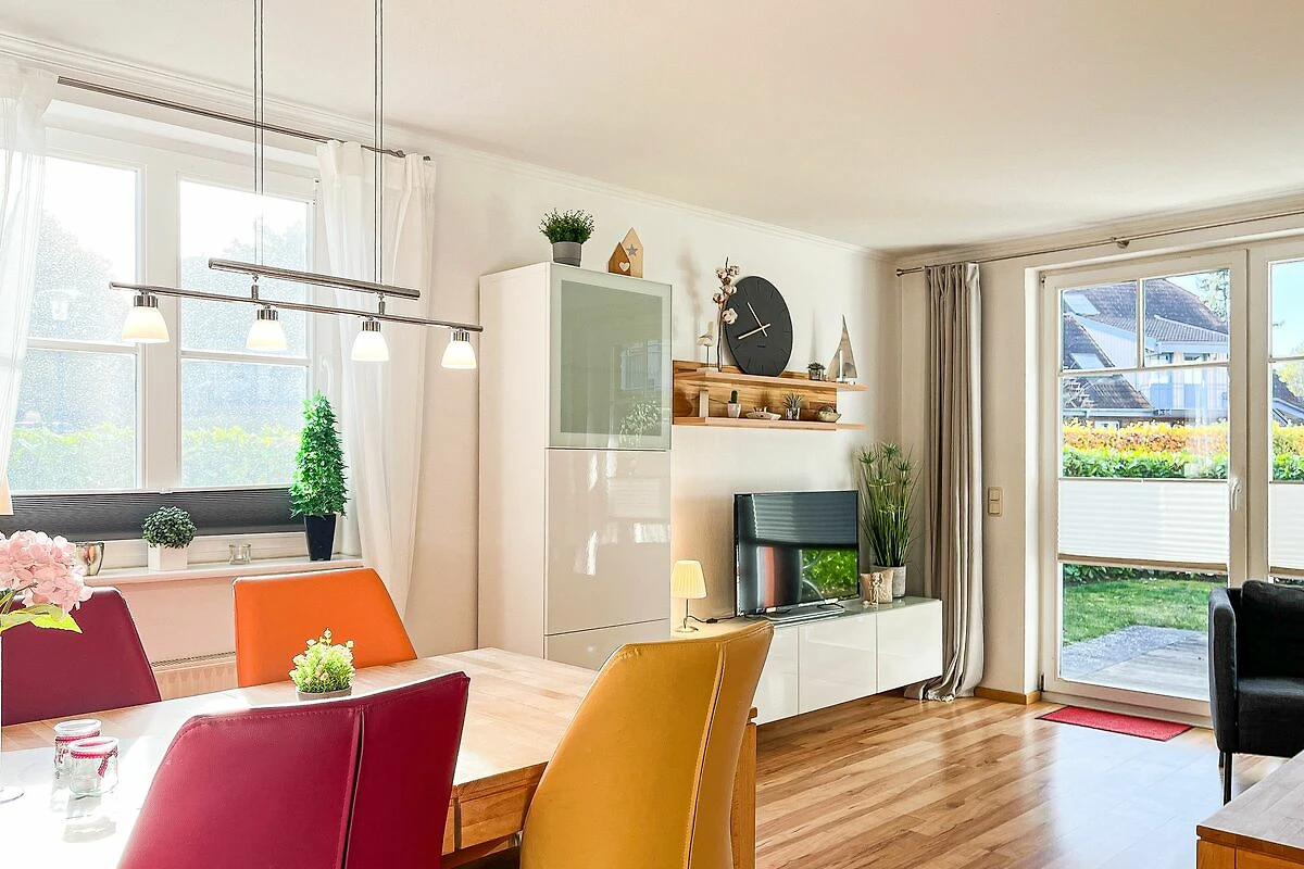 Die gemütliche Erdgeschoss-Wohnung, mit einer Terrasse und kleinem Garten in Süd-West-Lage, liegt am Ende des Hauses 3. Auf ca. 55 m² bewohnst du einen Wohn- und Essbereich, ein Schlafzimmer, eine Küchenzeile und ein Duschbad. Die Wohnung ist durch die Außenanlagen angenehm hell. Zum Strand sind es von der Ferienanlage Papillon etwa 250 m.