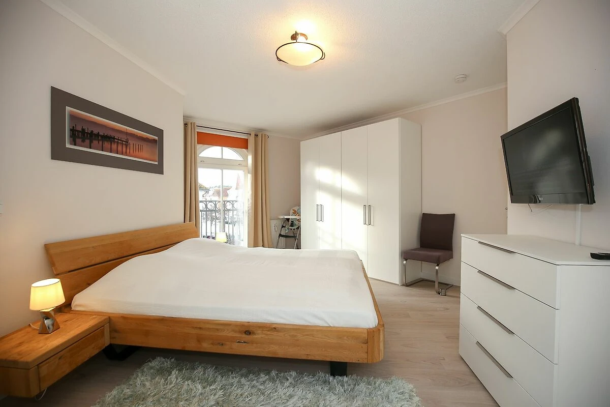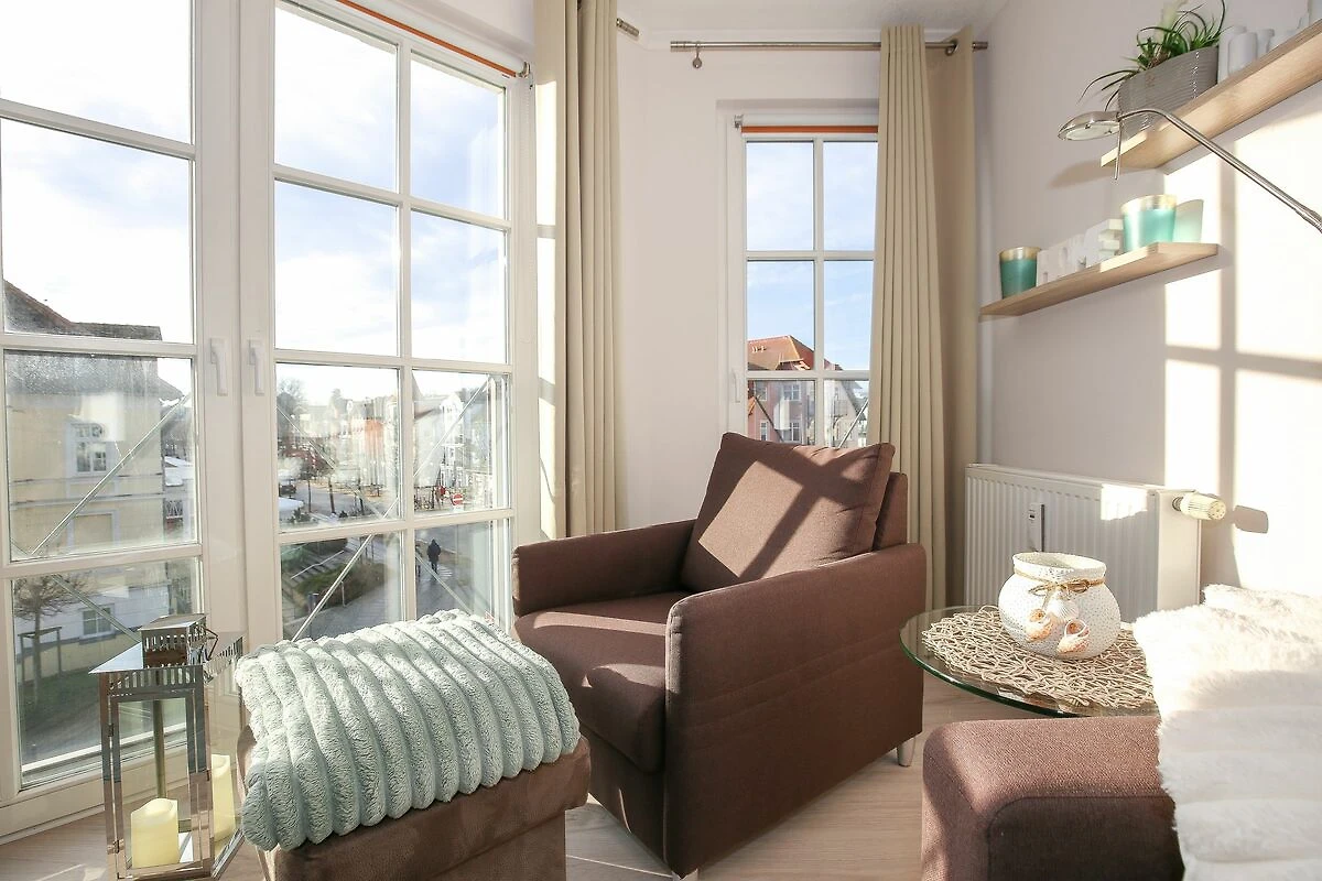 Die in Erdtönen eingerichtete 3-Zimmer-Ferienwohnung befindet sich im 2. Obergeschoss des „Atlantik“ und empfängt dich auf 67 m² zu erholsamen Urlaubstagen direkt an der Seebrücke. Die Wohnung gliedert sich für dich in einen kombinierten Wohn- und Essbereich, eine moderne Küchenzeile sowie einem Duschbad und zwei Schlafzimmern. Genieße die Sonne auf dem möblierten Süd-Balkon. Zum Strand und zur Seebrücke gehst du nur 50 Meter.