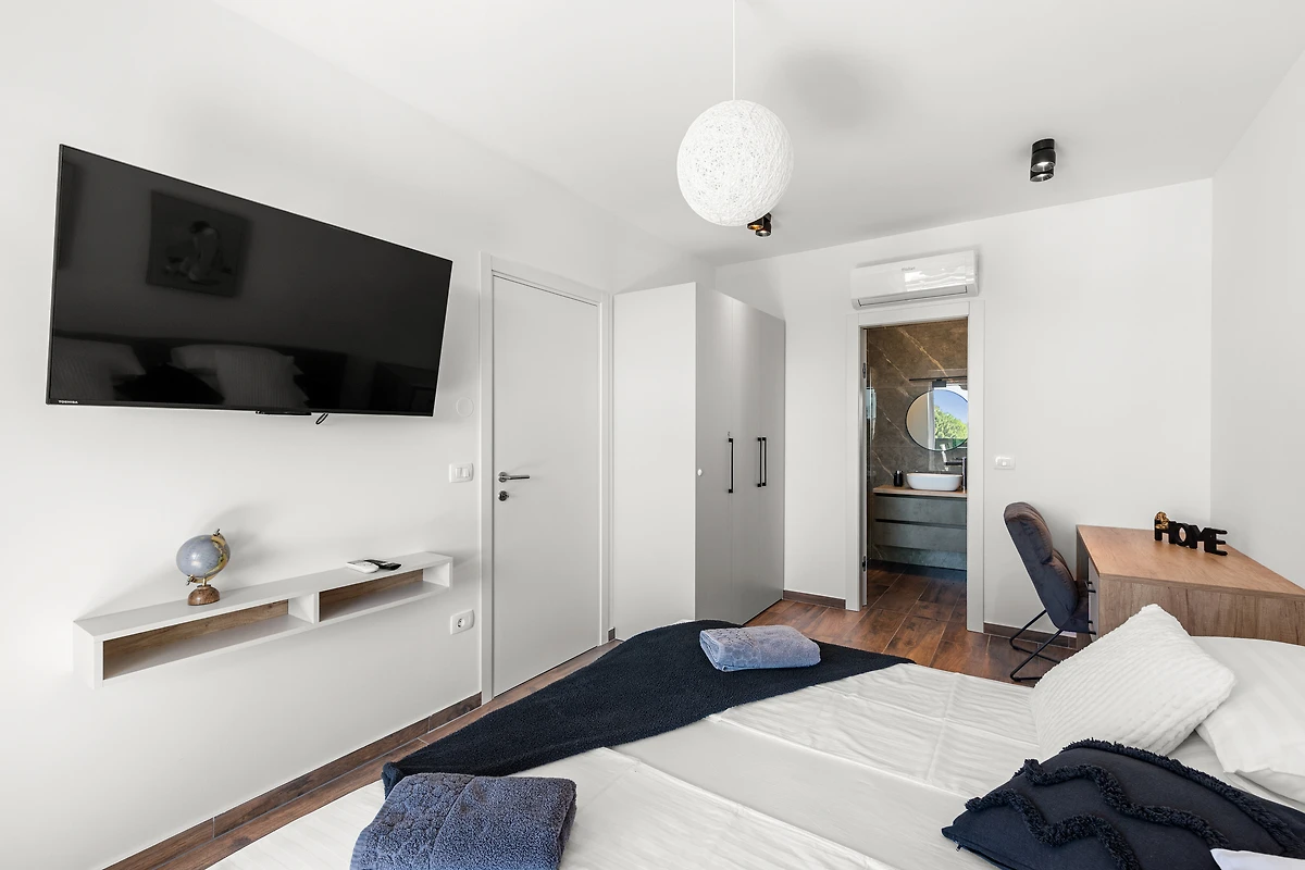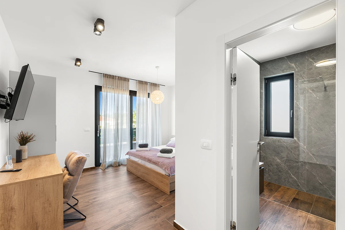 Genießen Sie den privaten Pool mit Sonnenliegen, den gepflegten Garten und den Grillbereich, perfekt für gemeinsame Abende im Freien. Die Villa Mattia verbindet modernen Komfort mit Ruhe und mediterranem Flair – alles, was Sie für einen unvergesslichen Aufenthalt in Istrien brauchen.
