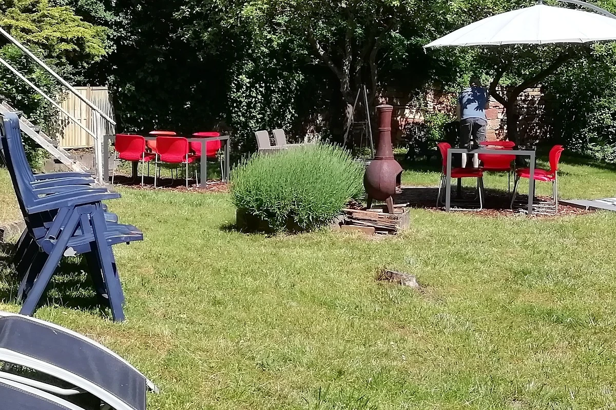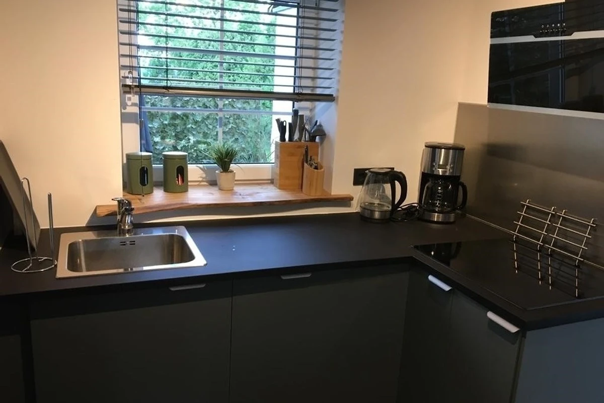 Richtige Urlaubsstimmung kommt auf der schönen Terrasse der Ferienwohnung auf. Im Urlaub kochen? Los geht´s, die Küche ist gut ausgestattet, sogar mit einer Spülmaschine.