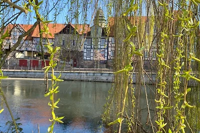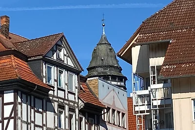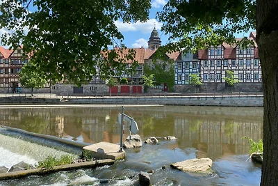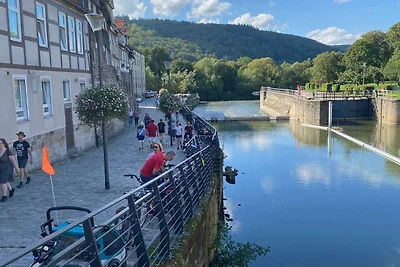 Die Altstadt (ca. 800 m entfernt), mit ihren ca. 700 sehr schön restaurierten Fachwerkhäusern, werden von Fulda und Werra begleitet, die dann am Ende der Halbinsel Tanzwerder die Weser entstehen lassen.
