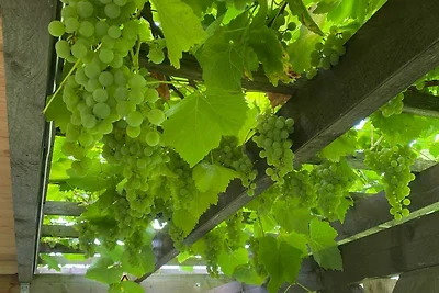 Sie haben einen separaten Eingang, eine überdachte Terrasse und einen grossen Garten mit Grillplatz und Liegewiese.
