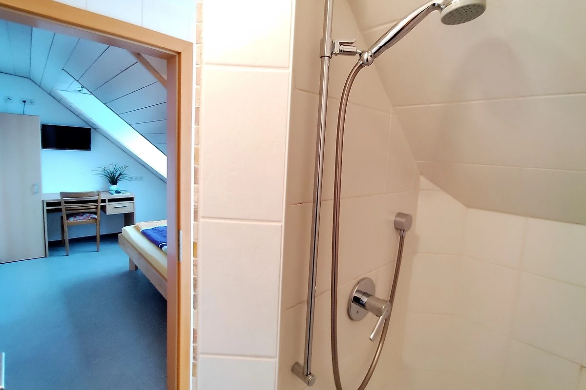 Das Einzelzimmer ist ausgestattet mit Einzelbett, Schreibtisch, DU / WC und WLAN.