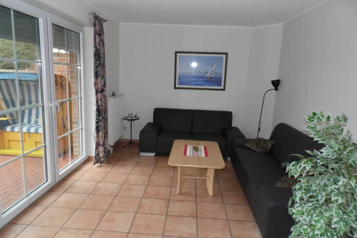 Diese Ferienwohnung ist 38 m² gross und verfügt über 1 Schlafzimmer mit Doppelbett, 1 Wohnzimmer mit gemütlicher Sitzgruppe, Bad mit WC und ebenerdiger stufenloser Dusche, Küche mit kompletter Einbauküche und Sitzmöglichkeiten für 3 Personen. Es gibt regulierbare Fussbodenerwärmung im Wohnzimmer, Bad, Flur und Küche. Im Wohnzimmer befindet Sie ein grossen Flachbildschirmfernseher.