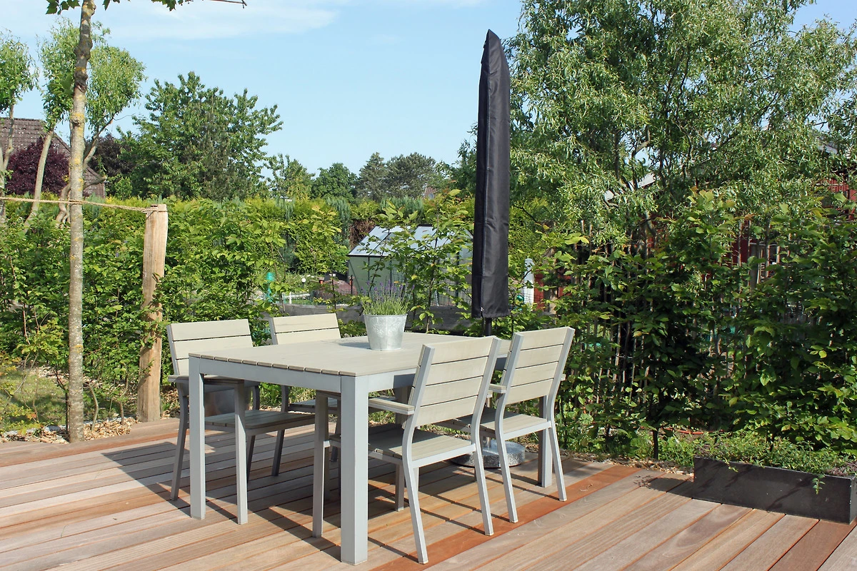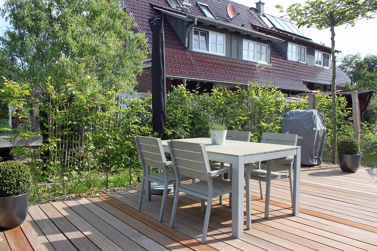 Vor dem Haus gibt es eine kleine Terrasse mit Gartenmöbeln und Grill, die Sie gemeinsam mit der im 1. Stock liegenden Ferienwohnung HeidiLux 2 (Platz für 2 Erwachsene, 2 Kinder) nutzen. Ein PKW-Stellplatz befindet sich auf dem Grundstück.