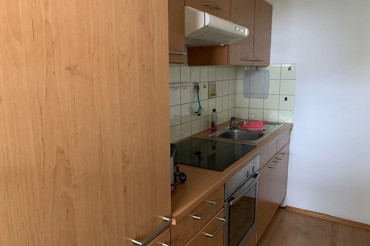 Eine separate Küche mit Kaffeefiltermaschine, Wasserkocher, Toaster, Kochfeld, Kühlschrank mit 3***-Gefrierfach und Backofen ist ideal, um sich ein Frühstück auf dem Balkon oder ein leckeres Abendessen zuzubereiten. Im Wohnzimmer befindet sich übergrosse Ledercouch als Schlafmöglichkeit für eine Person bis 190 cm sowie Essplatz für 4 Personen.