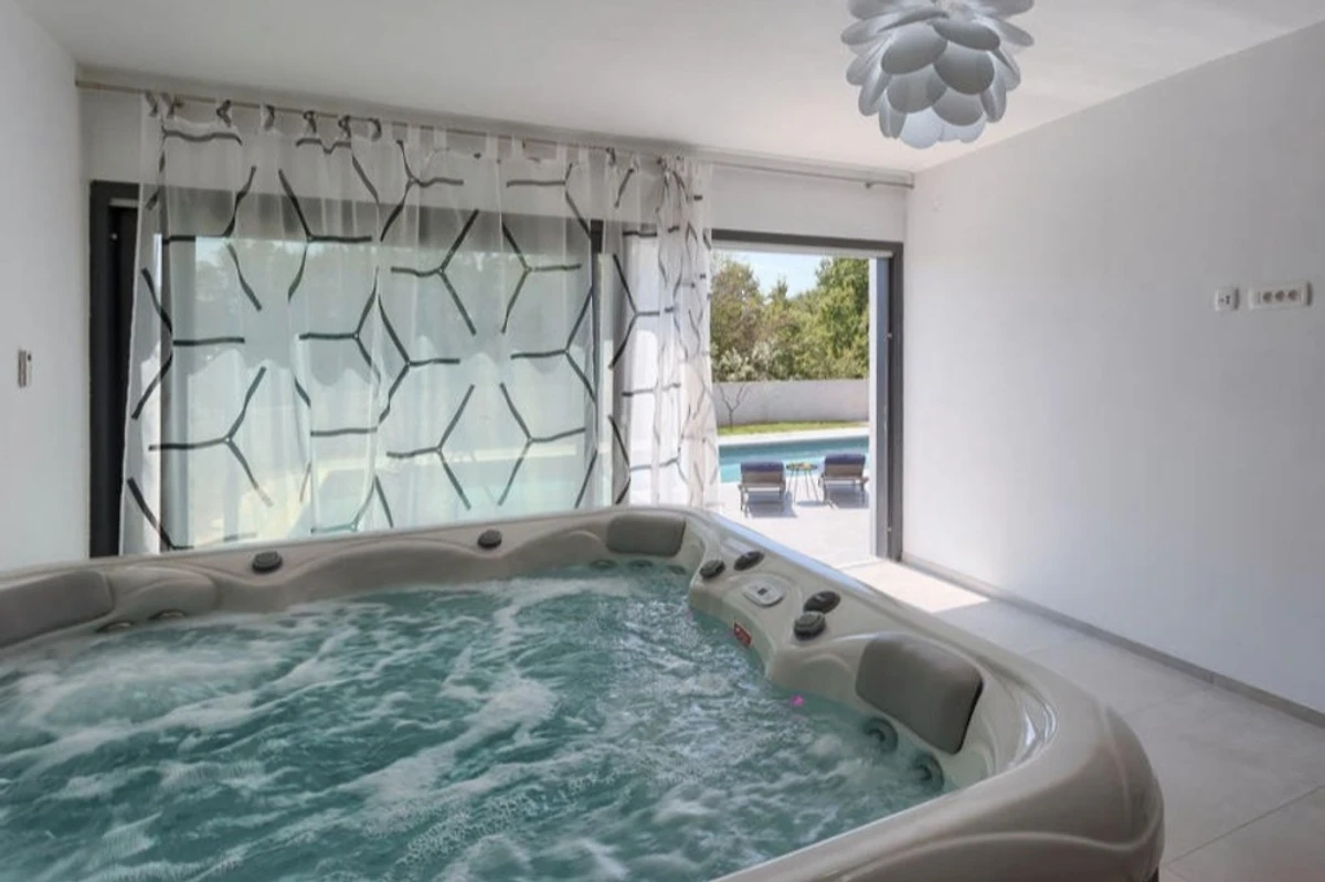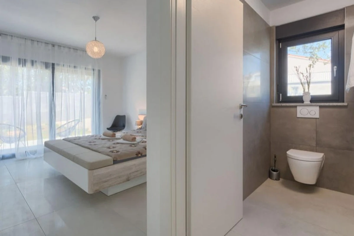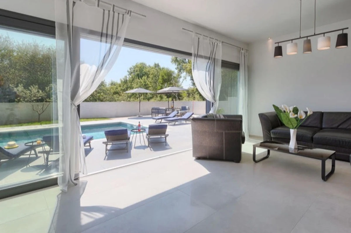 Diese moderne 2-stöckige Villa befindet sich in einem kleinen und ruhigen Dorf Loborika, 6 km vom Zentrum von Pula entfernt.