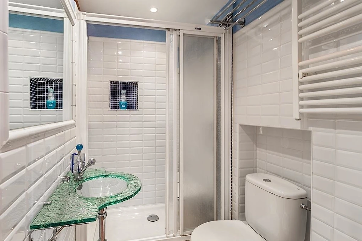 Im ersten Obergeschoss befindet sich Zimmer mit Doppelstockbett (für Kinder), im Durchgangsraum davor steht eine Couch, die auch als Doppelbett genutzt werden kann sowie ein Regal mit einigen Büchern, falls Sie beim Lesen entspannen möchten. Ein Badezimmer mit Toilette, Waschbecken, Wanne und Dusche steht Ihnen hier ebenfalls zur Verfügung.