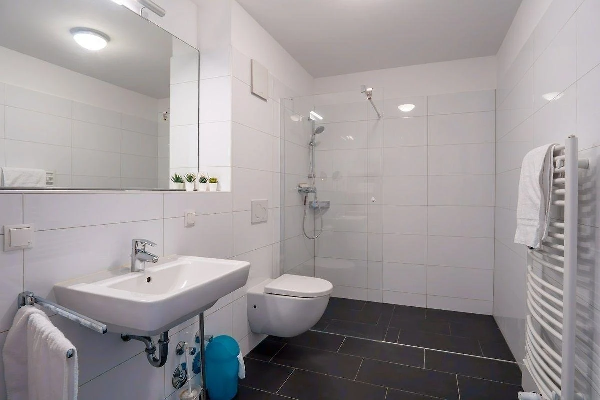 Das Schlafzimmer verfügt über ein gemütliches Doppelbett (160*200cm). Das Badezimmer ist mit einer ebenerdigen Dusche mit Glastrennwand ausgestattet.