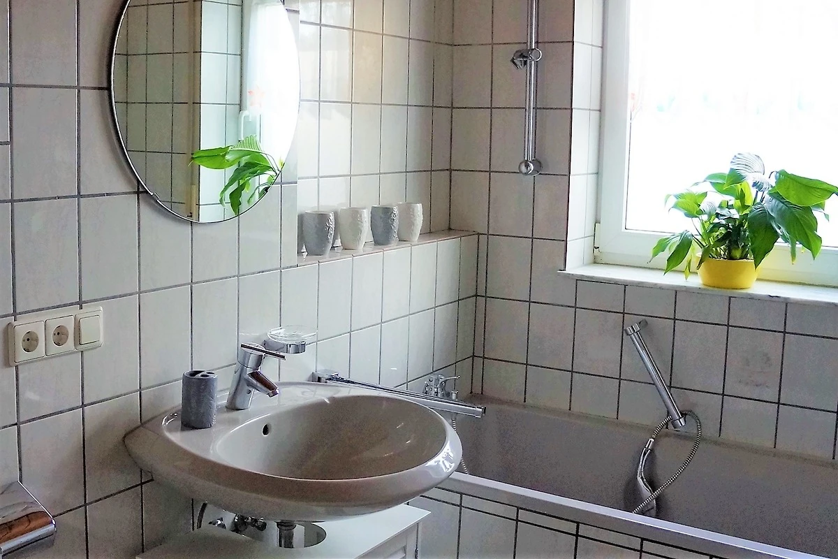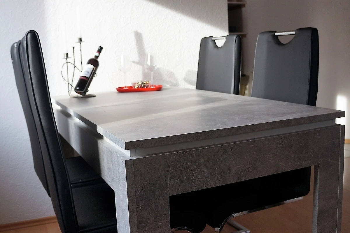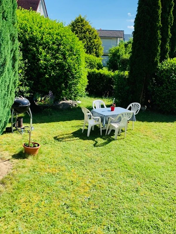 Im Wohnraum befinden sich des Weiteren ein Essplatz sowie eine Sitzecke für gemütliche Abende. Die Küche ist angrenzend an den Wohnraum ausgestattet mit Kühl- und Gefrierkombination, Cerankochfeld mit Backofen, Kaffeemaschine, Toaster und Wasserkocher. Ein Badezimmer mit Badewanne und WC - Haartrockner vorhanden. Eine Aussensitzgelegenheit am Eingang der Wohnung sowie eine weitere Möglichkeit im Garten zu sitzen ist vorhanden. Ein PKW-Stellplatz wird kostenfrei angeboten.