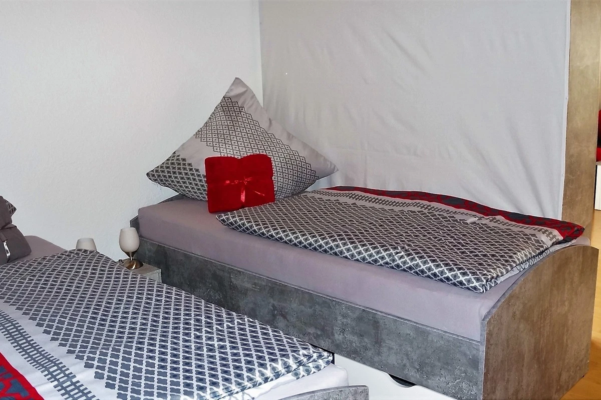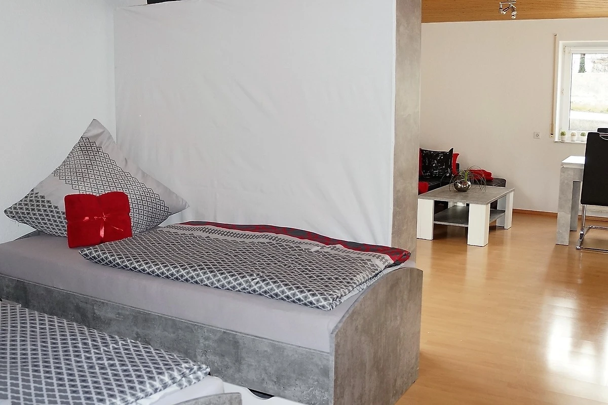 Die Ferienwohnung "La Musica" liegt im Souterrain als Einliegerwohnung des Hauses der Gastgeber Familie Mirl. Sie verfügt über ein separates Schlafzimmer sowie eine weitere Schlafmöglichkeit für 2 Personen im Wohnbereich durch einen Raumteiler abgetrennt. Alle Betten sind sowohl als Doppelbett als auch als Einzelbetten nutzbar.