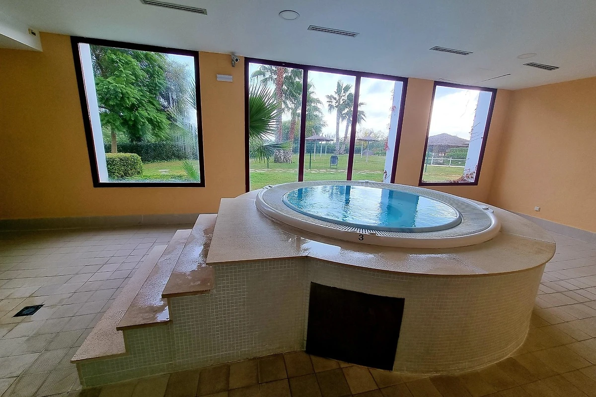 Es gibt einen grossen überdachten warmen Swimmingpool / Jacuzzis und Sauna in der Winterzeit und eine wunderschöne Pooloase zur Sommerzeit mit einem Chiringuito wird geboten.