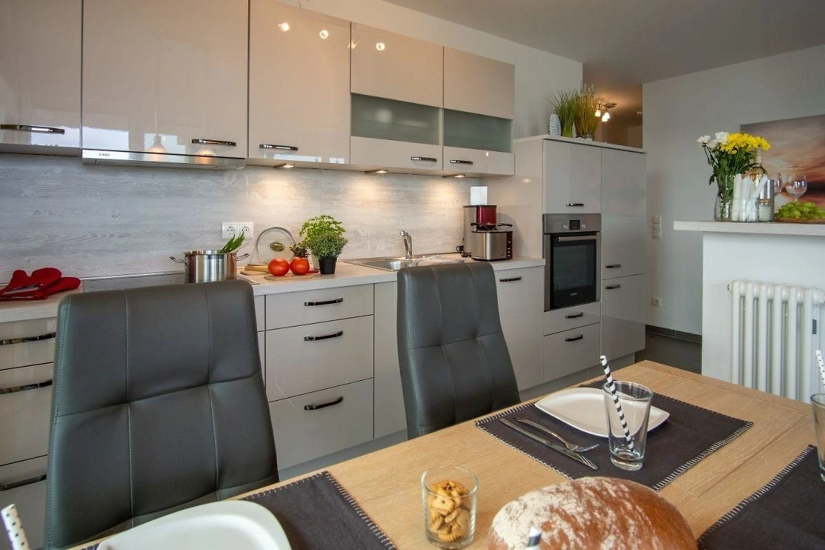 Urlauben Sie auf grosszügigen 71 m² (1. Etage) mit Südost-Balkon (Bangkiraiholz). Das lichtdurchflutete Wohnzimmer ist mit einer gemütlichen Sofaecke, Flatscreen-TV und Büchern ausgestattet. Im Essbereich finden bequem vier Personen Platz zum Schlemmen. Die angrenzende Küchenzeile ist, für den Urlaubsbedarf, voll ausgestattet. Ein Backofen und ein Geschirrspüler gehören ebenso dazu, wie die Kaffeemaschine, der Wasserkocher und ein Toaster. Geschirr und Besteck sind ausreichend vorhanden.