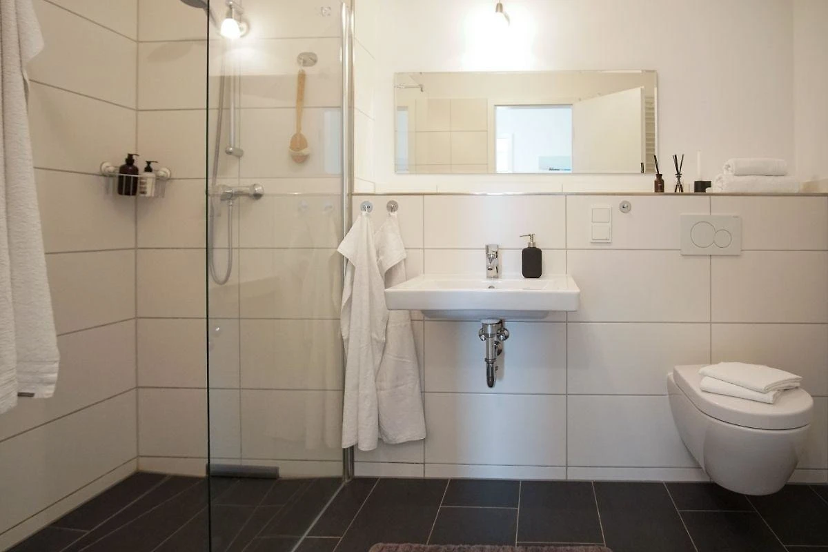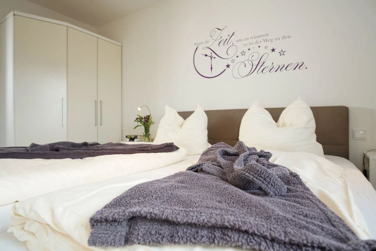 Das grosse Schlafzimmer verfügt über ein gemütliches Doppelbett (160*200cm). Das zweite Schlafzimmer ist mit einem bequemen Boxspringbett (140*200cm) und einem geräumigen Schrank eingerichtet. Das Badezimmer ist mit einer ebenerdigen Dusche mit Glastrennwand und einer Waschmaschine ausgestattet.