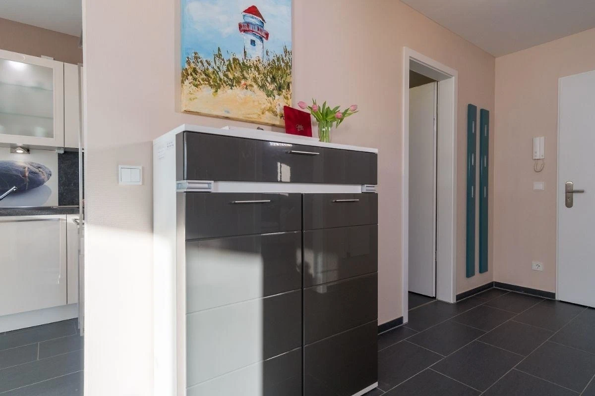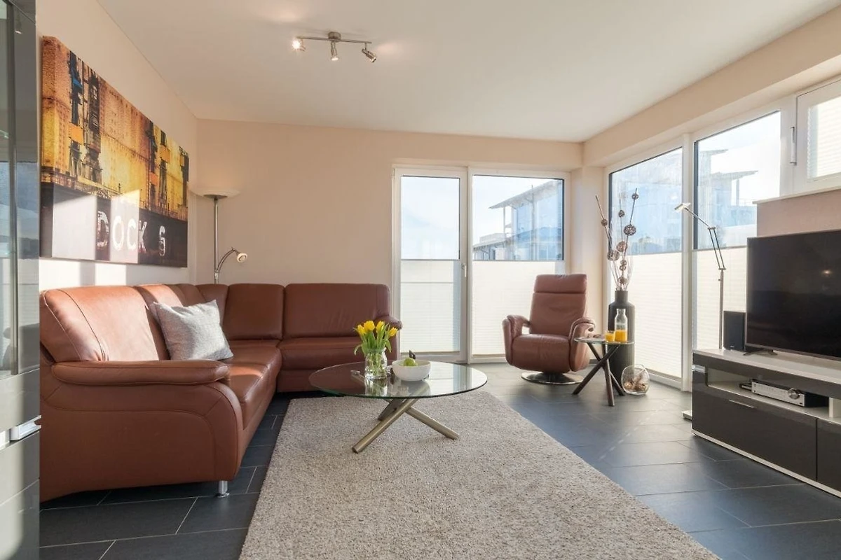 Urlauben Sie auf grosszügigen 77 m² (2. Etage) mit Nordwest-Balkon. Das lichtdurchflutete Wohnzimmer ist mit einer gemütlichen Sofaecke und Flatscreen-TV ausgestattet. Im Essbereich finden bequem bis zu vier Personen Platz zum Schlemmen. Die angrenzende Küchenzeile ist, für den Urlaubsbedarf, voll ausgestattet. Ein Backofen und ein Geschirrspüler gehören ebenso dazu, wie die Kaffeemaschine, der Wasserkocher und ein Toaster. Geschirr und Besteck sind ausreichend vorhanden.