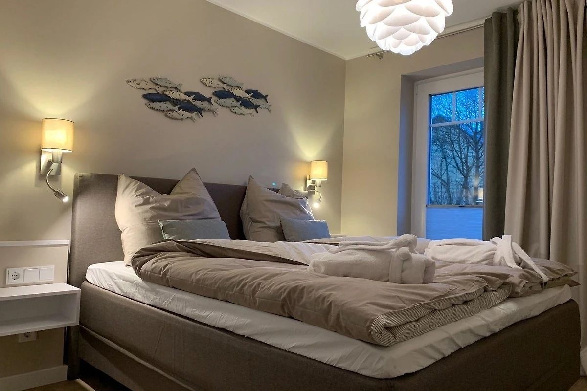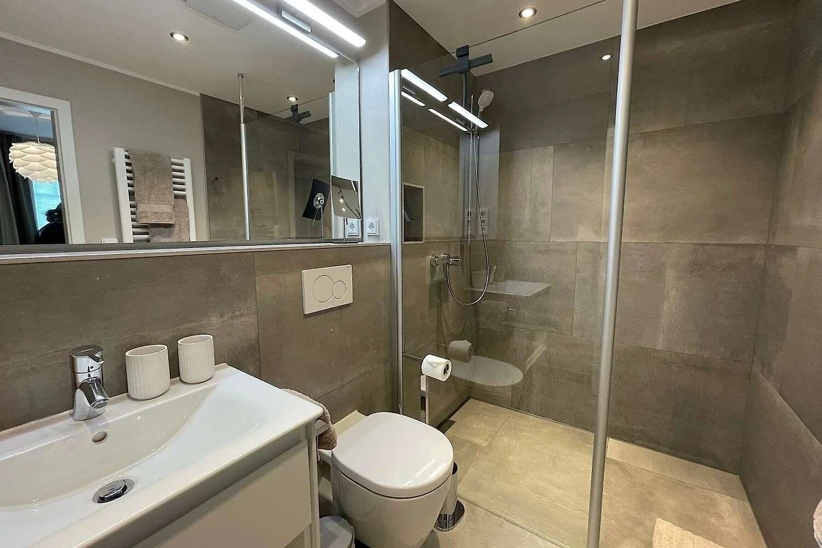 Schlafen Sie bequem auf hochwertigen Boxspringbetten oder im Wohnzimmer auf der grossen Schlafcouch. Hochwertige Einbauten und eine Küche mit gehobener Ausstattung die jeden Wusch erfüllt. In jedem Zimmer befinden sich 43 Zoll Full-HD TV's. Im Wellnessbereich befindet sich eine Sauna für 4 Personen, eine grosse Dusche und Badewanne.