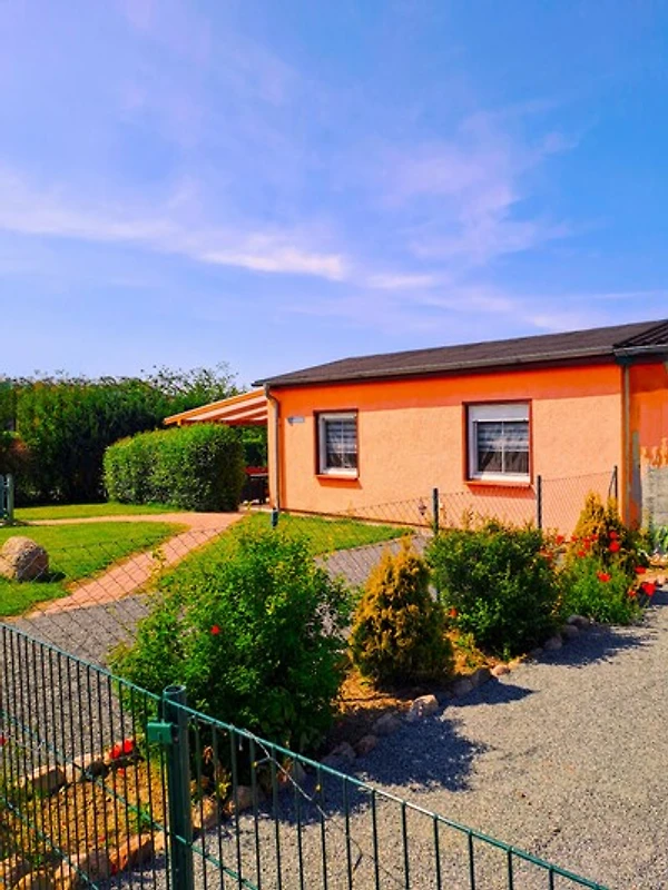 Die FeWo ist vollständig eingefriedet. Es befinden sich Blumen und Sträucher auf der Anlage. Sie können ca. 400 m² alleine nutzen.