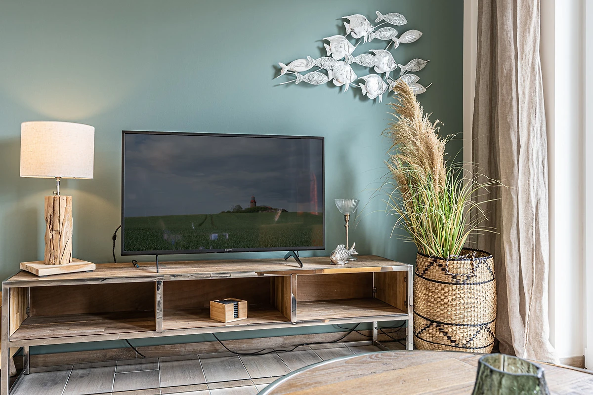 Das elegante Wohnzimmer ist mit einer bequemen Couch sowie Sessel und einem grossen Flatscreen-TV inkl. Smart-TV sowie einer Musikanlage mit CD-Player ausgestattet. Ankommen und direkt Wohlfühlen, unser Appartement lässt während Ihres Aufenthaltes keine Wünsche offen.