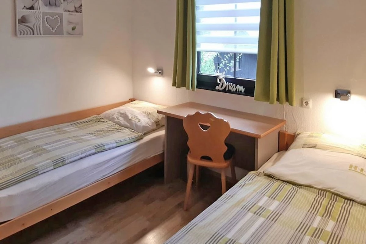 • Zwei Schlafzimmer, eines mit Doppelbett und 3-türigem Kleiderschrank, das andere mit zwei getrennt stehenden Betten, Schreibtisch und einem 2-türigen Kleiderschrank