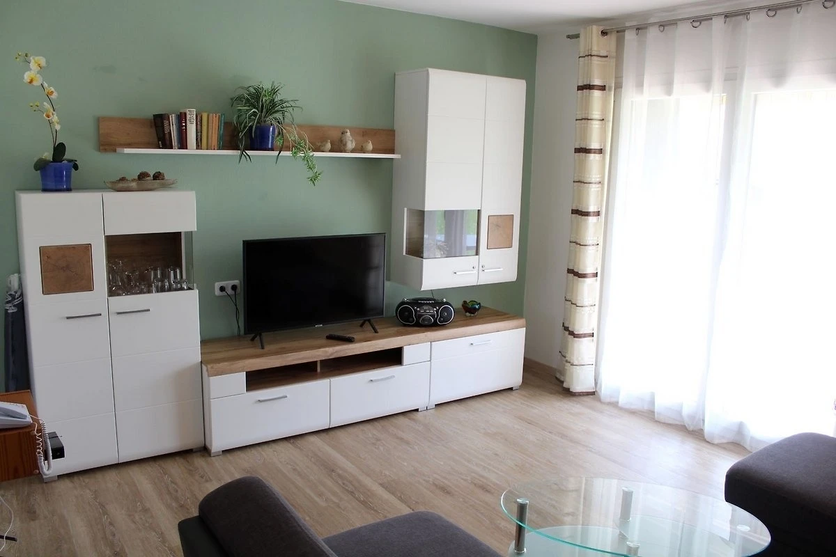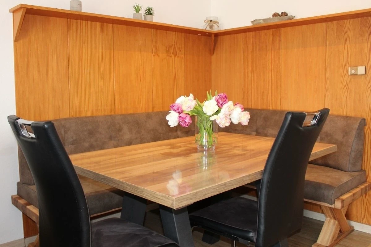 In der gemütlichen Wohnlandschaft können Sie sich nach einer langen Wanderung so richtig wohlfühlen und entspannen. Flachbild-TV und Radio/CD-Player gehören ebenfalls zur Ausstattung dieses Hauses. Bei Belegung mit 5 Personen dient das ausziehbare Sofa als Schlafgelegenheit für die 5. Person. Vom Wohnzimmer aus gelangen Sie direkt auf Ihre Terrasse. Grillen mit Ihrem eigenen Grill ist gestattet. Der direkt angrenzende Essbereich bietet Platz für Ihre gemeinsamen Mahlzeiten und gemütliche Abende.