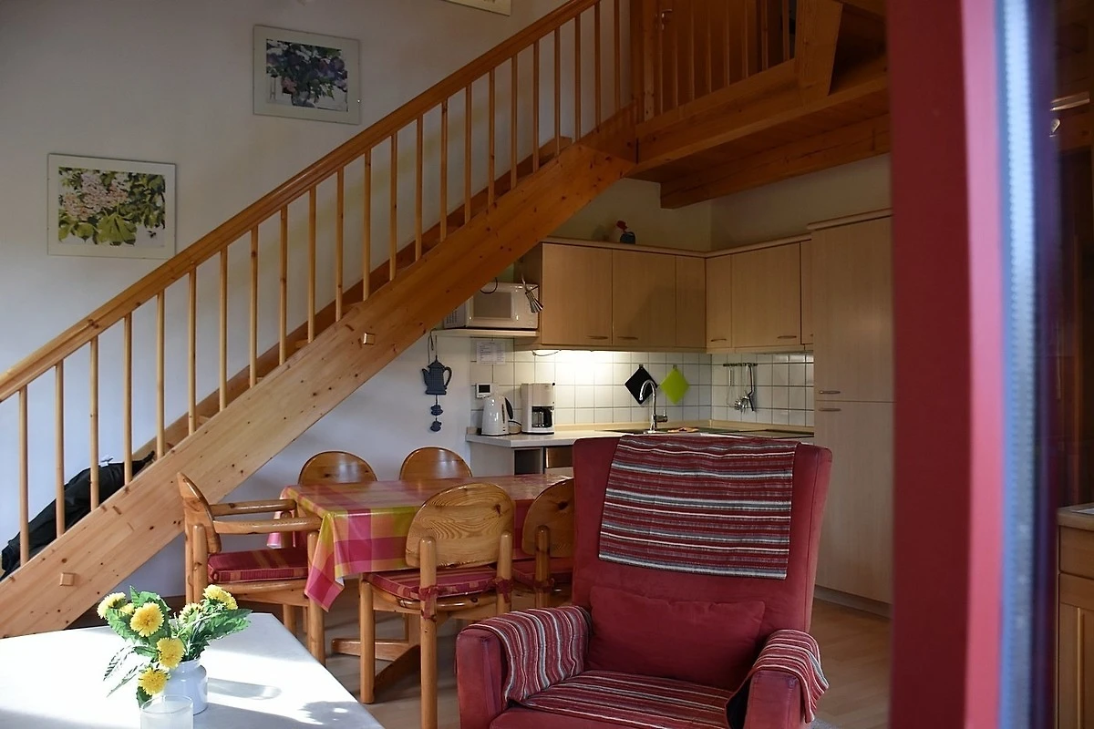 Das in Holzbauweise gebaute Ferienhaus Typ A2 ist ein 3-Zimmer-Maisonette-Appartementhaus für max. 6 Personen (ca. 75 qm).