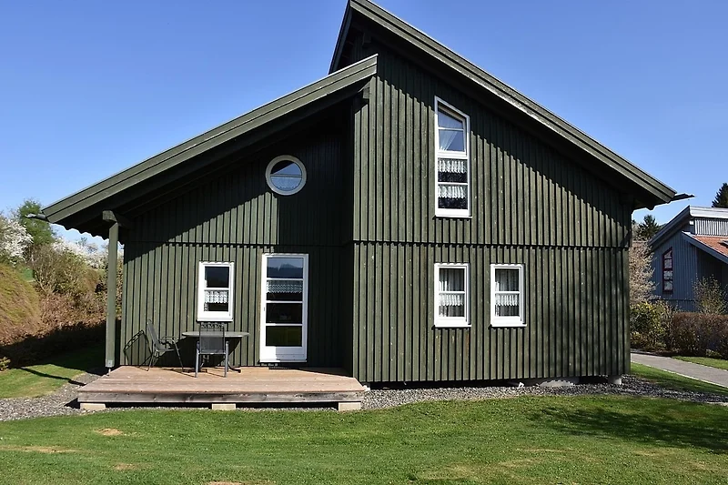 Das in Holzbauweise gebaute Ferienhaus Typ A 2 ist ein 3-Zimmer-Maisonette-Appartementhaus für max. 6 Personen (ca. 75 qm).