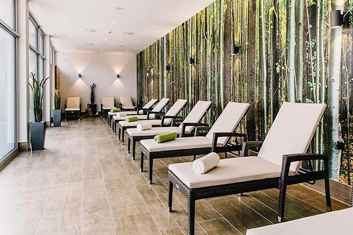 Die Nutzung der Saunalandschaft ist ab 16 Jahren gegen einen Aufpreis möglich.