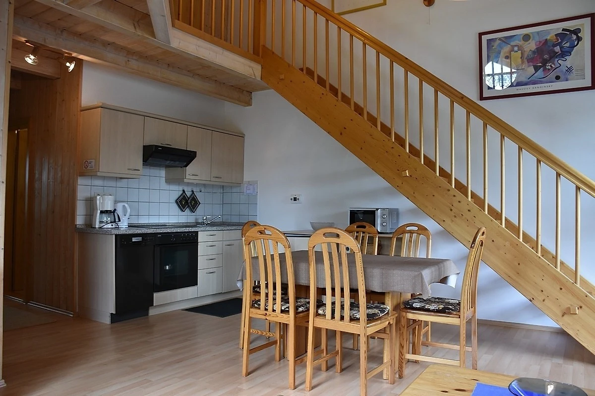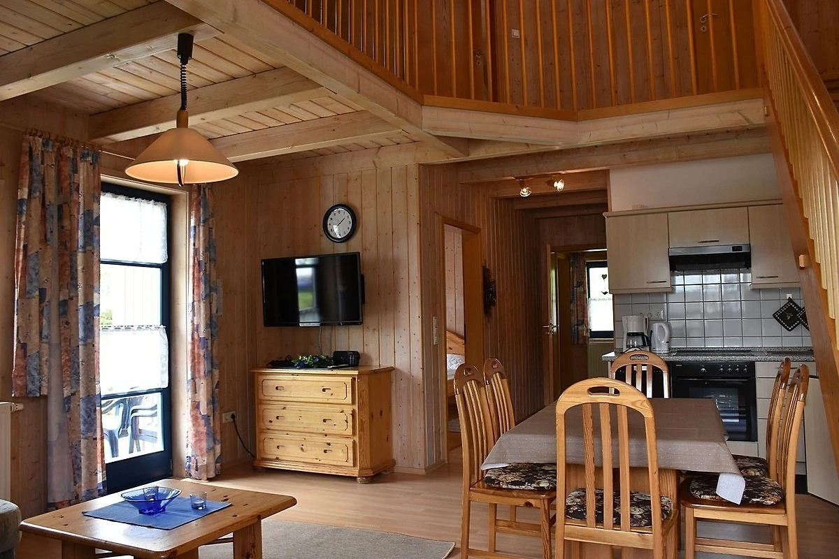 Das in Holzbauweise gebaute Ferienhaus Typ A2 ist ein 3-Zimmer-Maisonette-Appartementhaus für max. 6 Personen (ca. 75 qm).