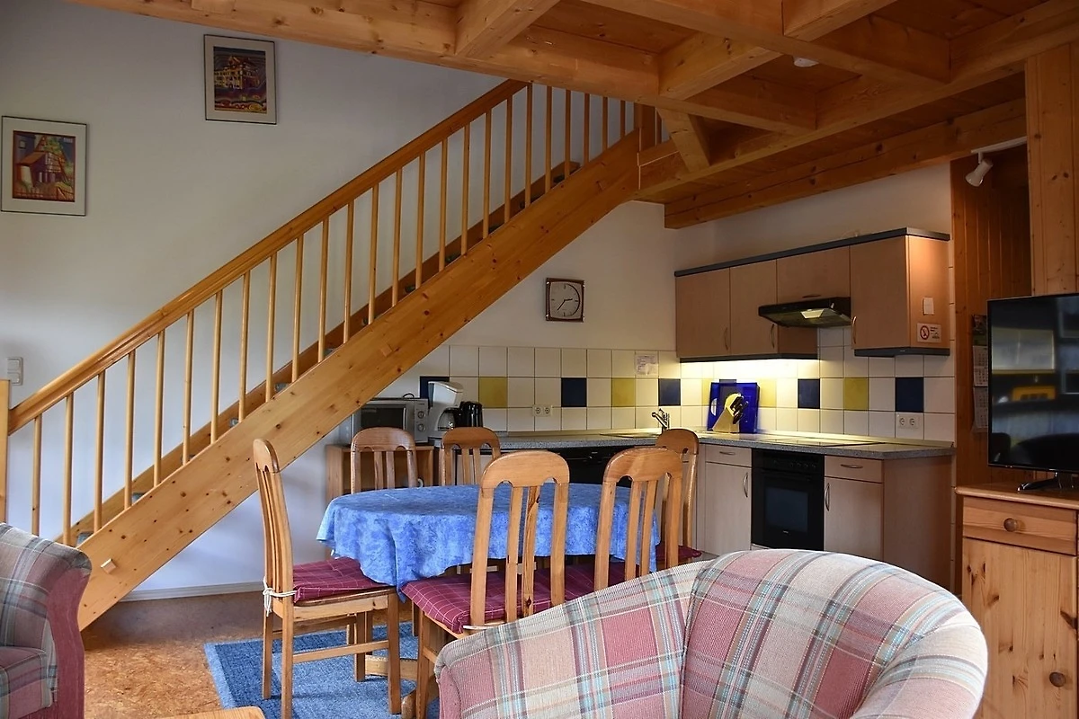 Das in Holzbauweise gebaute Ferienhaus Typ A3 ist ein 4-Zimmer-Maisonette-Appartement für max. 6 Personen (ca. 75 qm).
