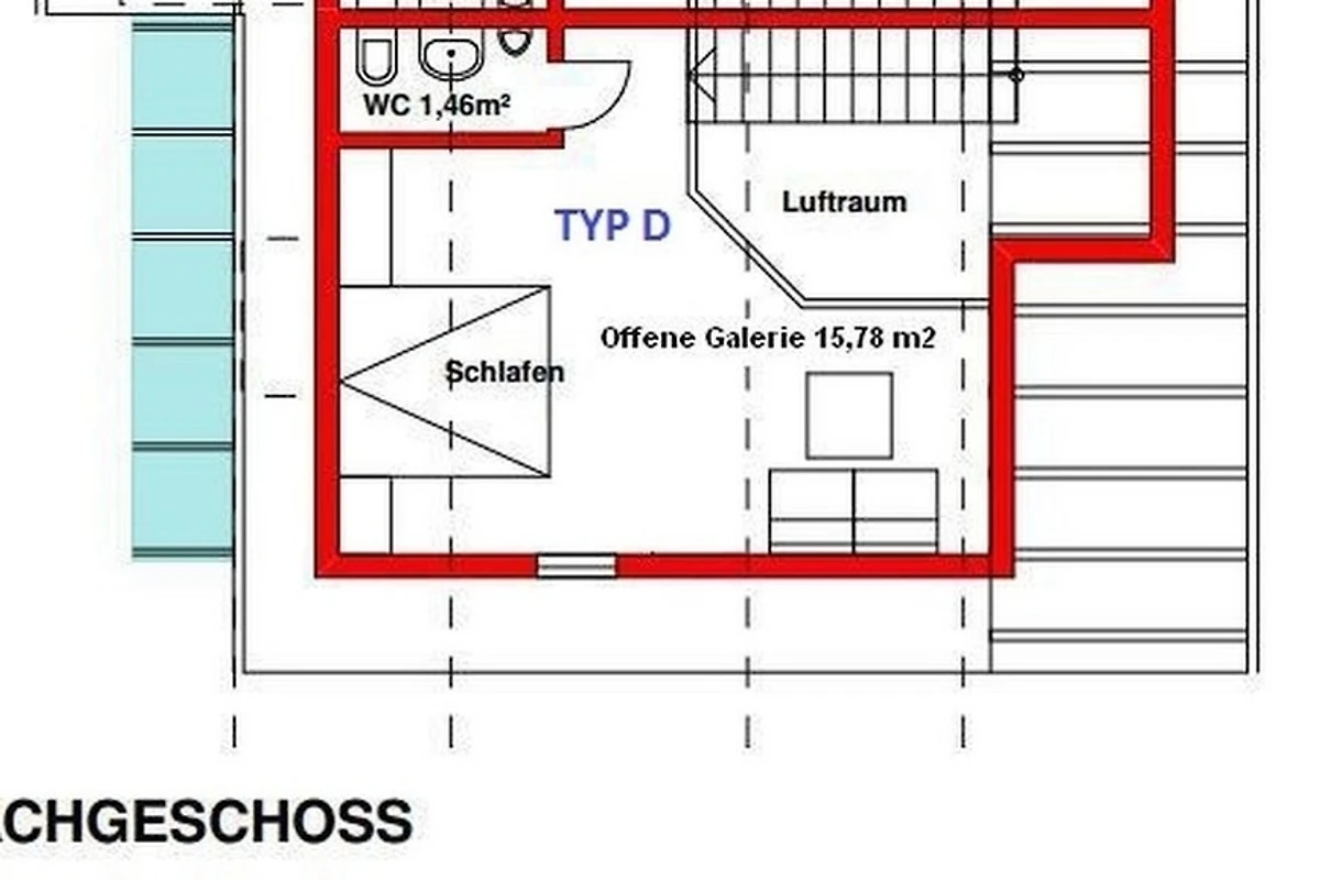Im OG (über Treppe vom Wohnraum aus erreichbar): offene Galerie mit Doppelbett und gemütlich wirkender Dachschräge, ein weiteres WC.