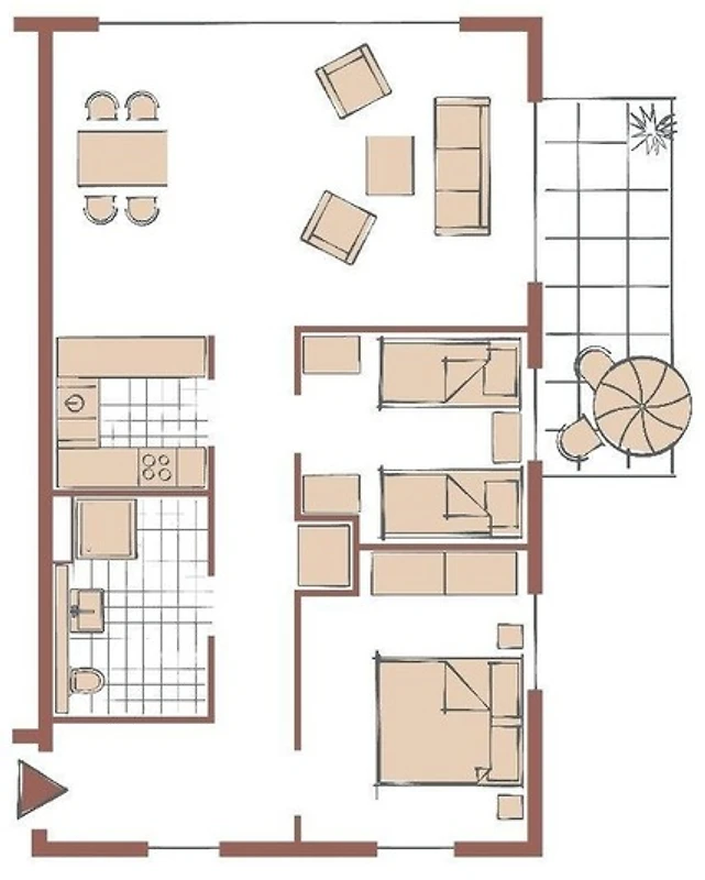 Urlauben Sie auf grosszügigen 70 m² (1. Etage) mit Balkon und tollem Blick zum Meer. Das grosse Wohn-Esszimmer ist mit einer gemütlichen Sofaecke und Flatscreen-TV ausgestattet. Im Essbereich finden bequem vier Personen Platz zum Schlemmen.