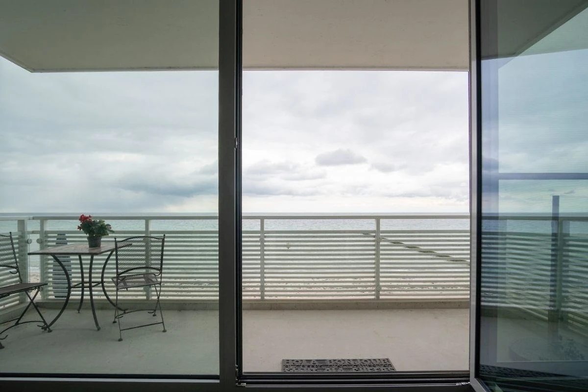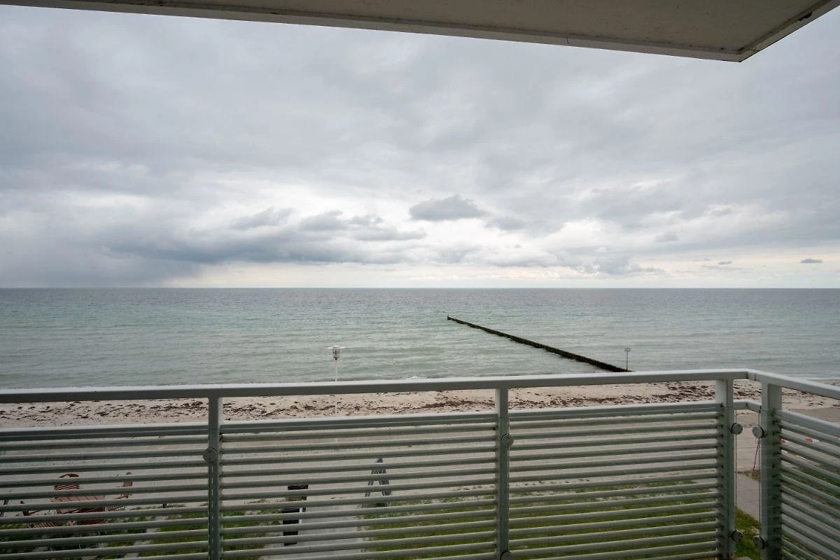 Vom Wohnzimmer aus gelangen Sie auf den Balkon mit traumhaften Blick zum Strand und zur Ostsee.