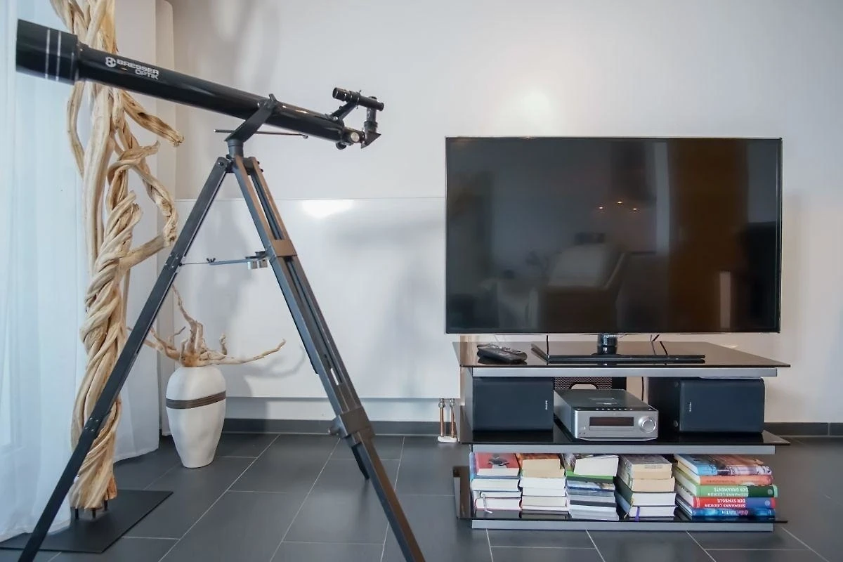 Das Schlafzimmer verfügt über ein gemütliches Doppelbett (mit zwei Matratzen) und einen eigenen TV. Der offene Küchenbereich ist, für den Urlaubsbedarf, voll ausgestattet. Ein Backofen und ein Geschirrspüler gehören ebenso dazu, wie die Kaffeemaschine, der Wasserkocher und ein Toaster. Geschirr und Besteck sind ausreichend vorhanden. Das Badezimmer ist mit einer Dusche mit Glastrennwand ausgestattet.