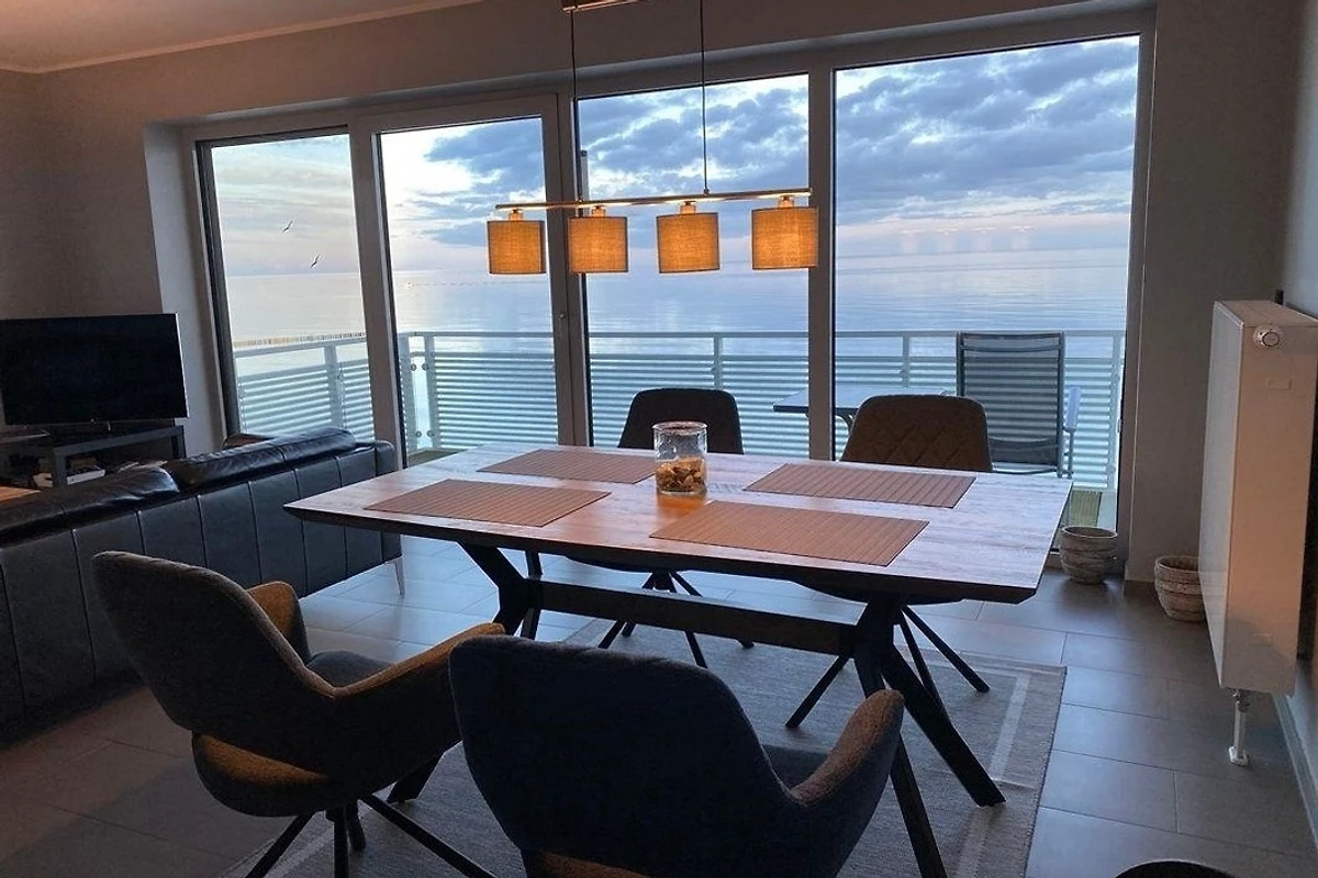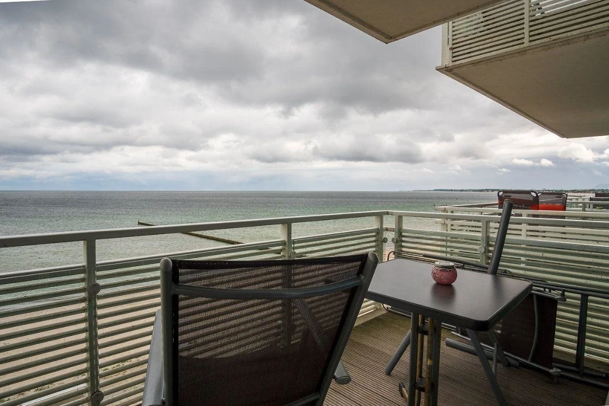 Vom Wohnzimmer aus gelangen Sie auf den Balkon mit traumhaften Blick zum Strand und zur Ostsee.
