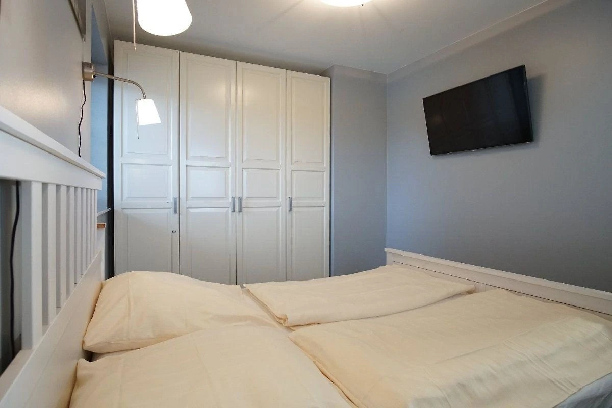 Urlauben Sie auf grosszügigen 70 m² (2. Etage) mit Balkon und tollem Blick zum Meer. Das grosse Wohn-Esszimmer ist mit einer gemütlichen Sofaecke und Flatscreen-TV ausgestattet. Im Essbereich finden bequem vier Personen Platz zum Schlemmen. Vom Wohnzimmer aus gelangen Sie auf den Balkon mit traumhaften Blick zum Strand und zur Ostsee. Das grosse Schlafzimmer verfügt über ein gemütliches Doppelbett (mit zwei Matratzen) und einem eigenen TV. Das zweite Schlafzimmer ist mit zwei komfortablen Einzelbetten eingerichtet. Der offene Küchenbereich ist, für den Urlaubsbedarf, voll ausgestattet. Ein Backofen und ein Geschirrspüler gehören ebenso dazu, wie die Kaffeemaschine, der Wasserkocher und ein Toaster. Geschirr und Besteck sind ausreichend vorhanden. Das Badezimmer ist mit einer Dusche mit Glastrennwand ausgestattet.
