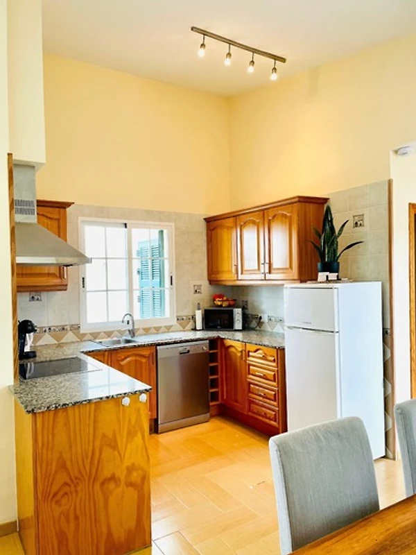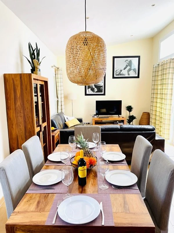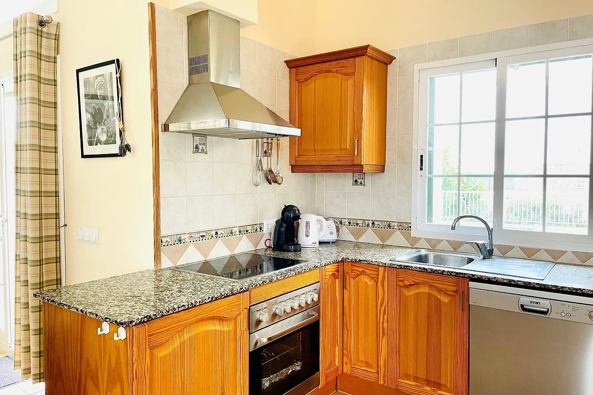 Der offene und helle Wohn- und Essbereich mit der voll ausgestatteten Küche bietet alles was man für einen entspannten Urlaub benötigt.