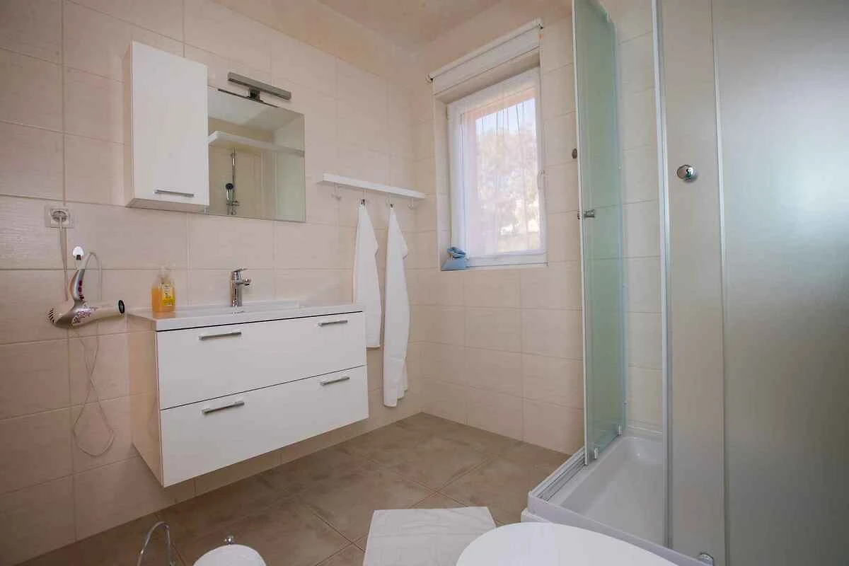 Einkauf 100 m, Restaurant 200 m, Ortszentrum 200 m. Arzt, Apotheke, Bank jeweils 6 km in Rab. Kinderspielplatz 100 m. Im Sommer: Adriatisches Meer 200 m in Barbat (Strand 200 m in Barbat mit Kies). Bootsanleger in Barbat 300 m.