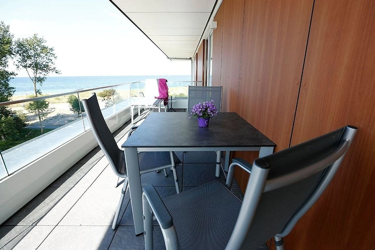 Die hochwertigen Balkonmöbel und Sonnenliegen laden zum Entspannen auf den Balkonen ein.