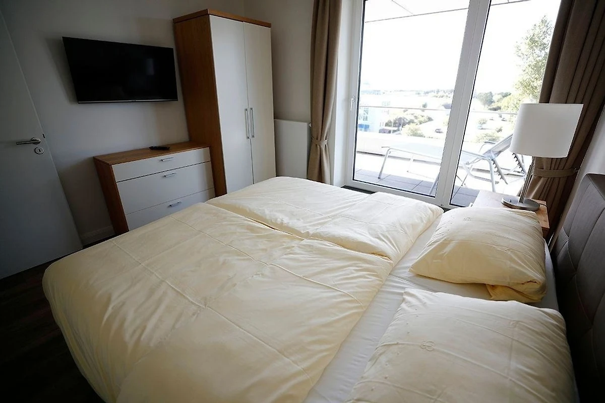 Die drei Schlafzimmer mit Boxspringbetten sorgen mit den Verdunkelungsvorhängen für einen erholsamen Schlaf.