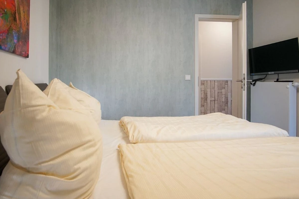 Das grosse Schlafzimmer verfügt über ein gemütliches Doppelbett (160*200cm) mit eigenem TV. Das zweite Schlafzimmer ist mit zwei Einzelbetten, einem TV und einem geräumigen Schrank eingerichtet. Das Badezimmer ist mit einer ebenerdigen Dusche mit Glastrennwand und einer Sauna ausgestattet. Zudem verfügt die Wohnung noch über ein Gäste-WC.